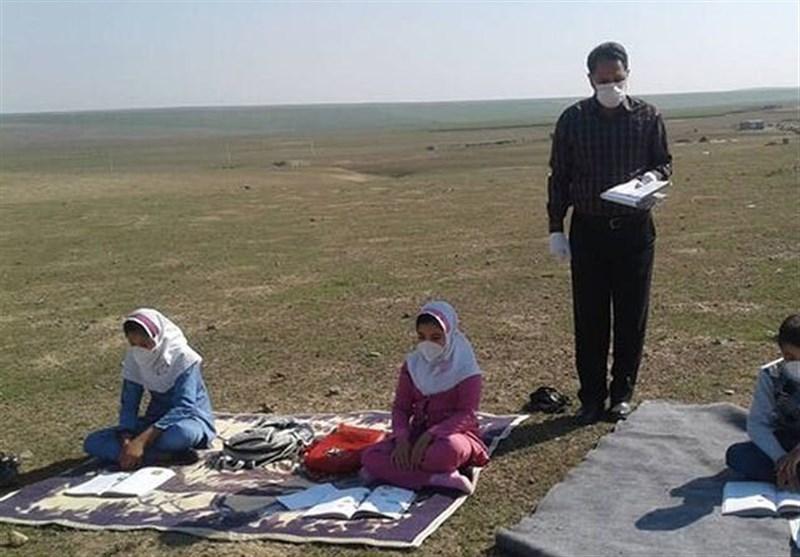 آقای نوازش گفت: روستای قره قشلاق جعفرآباد، روستایی دورافتاده است و دانش آموزان در مدارس کانکسی، تحصیل میکنند؛ در این مدرسه تلفن وجود ندارد و دانش آموزان نیز به اینترنت و شبکههای تلویزیونی دسترسی ندارند. با توجه به نبود اینترنت و شبکههای تلویزیونی، برای اینکه دانش آموزان از دروس خود عقب نمانند با رعایت فاصله گذاری اجتماعی، کلاس درس دانش آموزان به صورت دو نفری در دشت مغان برگزار میشود.