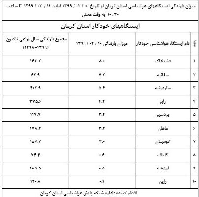 میزان بارشها در نقاط مختلف استان به شرح زیر است:
