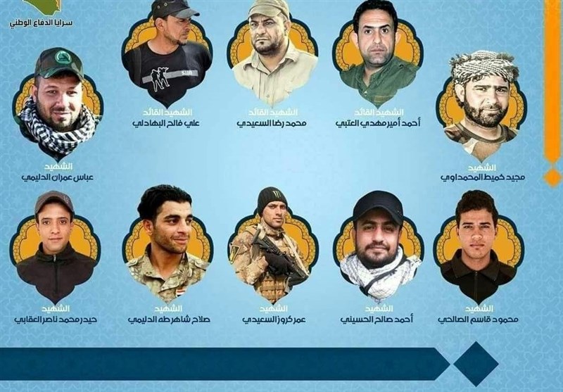 تصویری از 10 شهیدی که در درگیری با تروریست های تکفیری در استان صلاح الدین عراق به شهادت رسیدند منتشر شده است. در میان این 10 شهید نام سه فرمانده عراقی حشدالشعبی و 7 رزمنده مقاومت دیده میشود که طی این دو روز در عراق تشییع و خاکسپاری شدند. شهدای مدافع حرم شهر سامرا در استان صلاح الدین عبارتند از: فرمانده «شهید احمد امیر مهدی العتبی»، فرمانده «شهید محمدرضا السعیدی»، فرمانده «شهید علی فالح البهادلی»، «شهید خمیط المحمداوی»، «شهید قاسم الصالحی»، «شهید احمد صالح الحسینی»، «شهید عمر کروز السعیدی»، «شهید صلاح شاهر طه الدلیمی»، «شهید حیدر محمد ناصر العقابی»، «شهید عباس عمران الدلیمی»