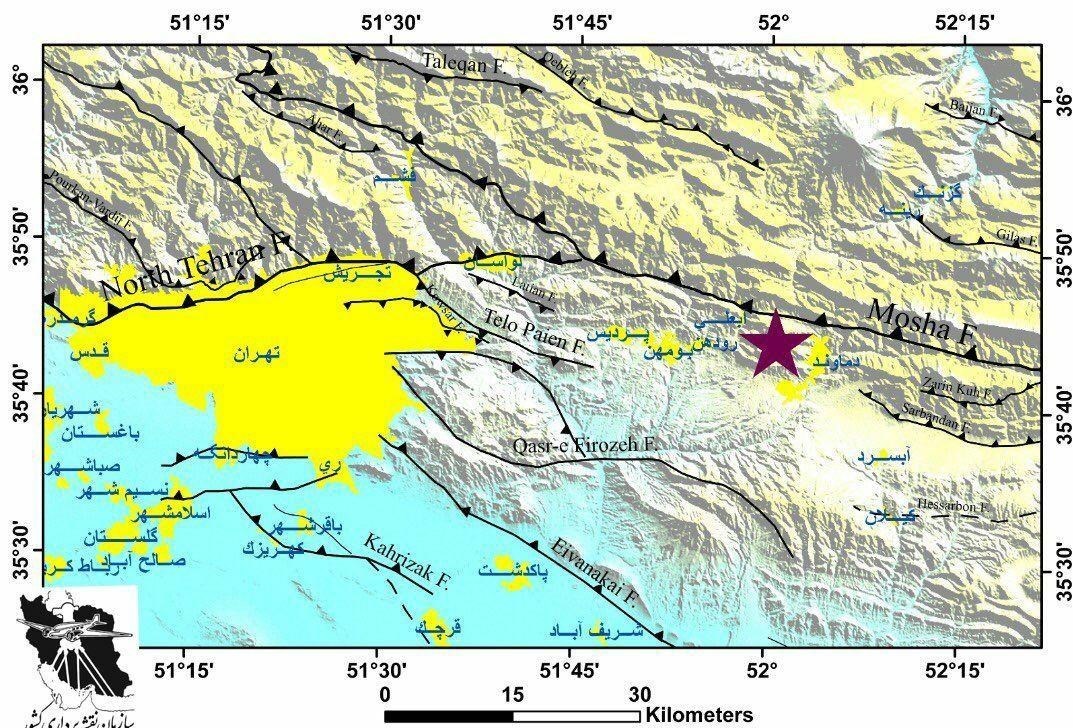 مرکز زلزله 5.1 ریشتری گسل مشاء دماوند بود