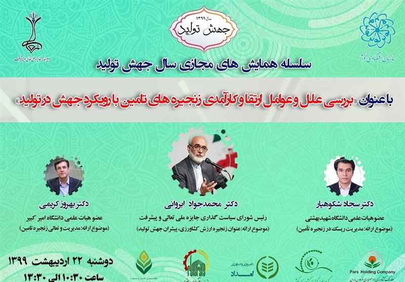 به گزارش خبرگزاری تسنیم، همایش مجازی «بررسی علل و عوامل ارتقا و کارآمدی زنجیره های تامین با رویکرد جهش در تولید » با حضور 200 نفر از مدیران شرکت های برتر حوزه کشاورزی و امنیت غذایی کشور به همت «دبیرخانه جایزه ملی تعالی و پیشرفت» و با همکاری روابط عمومی سازمان اقتصادی کوثر صبح امروز 22 اردیبهشت 99 برگزار شد.