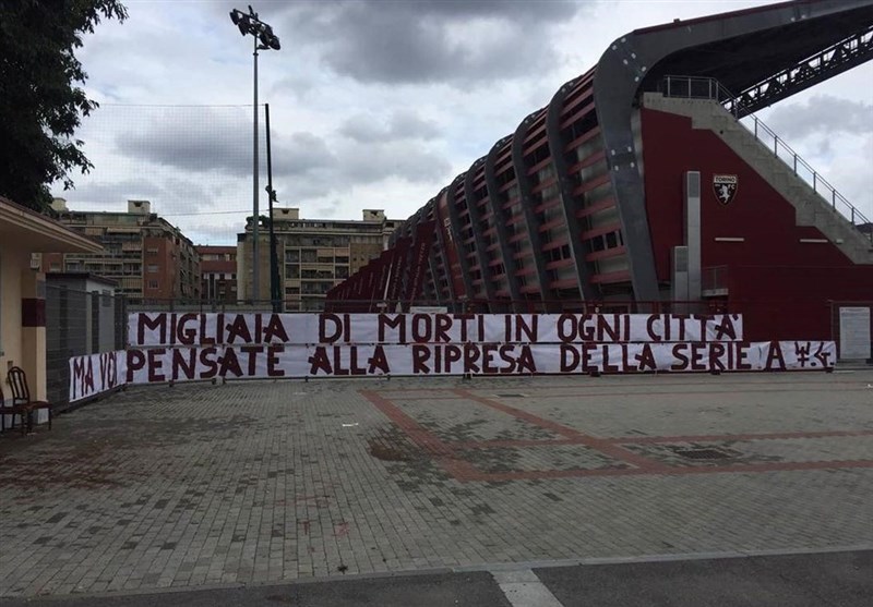 با این اوصاف به نظر میرسد حداقل هواداران تورینو تمایلی به رخ دادن این اتقاق ندارند. امروز بنری از سوی هواداران متعصب این باشگاه در یکی از ورودیهای استادیوم این باشگاه نصب شده که مضمون آن عدم تمایل آنها به از سرگیری مسابقات سری A است. در این نوشته آمده :« هزاران کشته در هر شهر اما شما به فکر آغاز دوباره سری A هستند.»