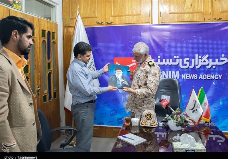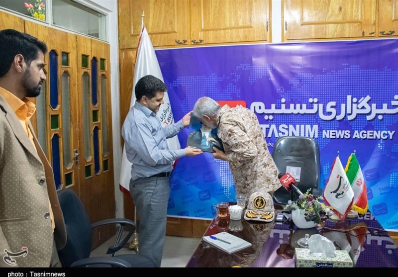 سردار غلامعلی تناکی فرمانده قرارگاه عملیاتی شهید ناصری به منظور عرض خداقوت و قدردانی از همکاری خبرگزاری تسنیم با این قرارگاه با حضور در خبرگزاری تسنیم خراسان جنوبی ضمن دیدار با مدیر دفتر استانی این خبرگزاری در نشست خبری فعالیتها و اقدامات این قرارگاه را با موضوع محرومیت زدایی و امنیت تشریح کرد.