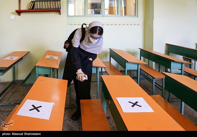 مدرسه هم ماسک و دستکش در اختیار ندارد تا به دانشآموزانی که ندارند، بدهد البته مدرسه 4 لیتر وایتکس خریده و هر روز بعد از امتحان محیط را با پمپ ضدعفونی میکند.