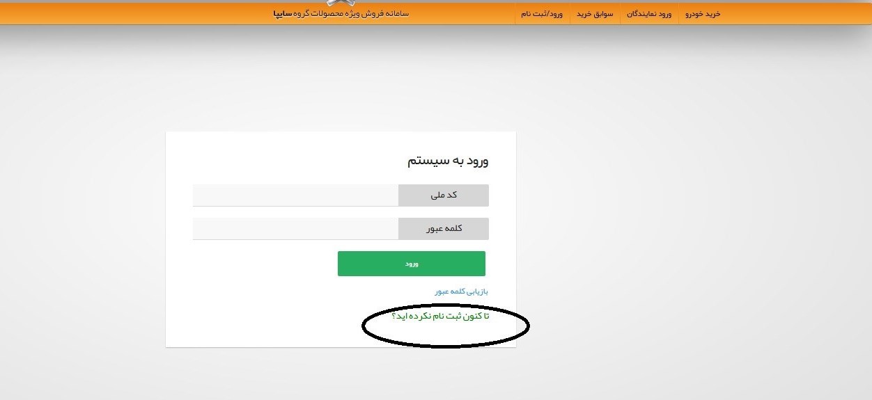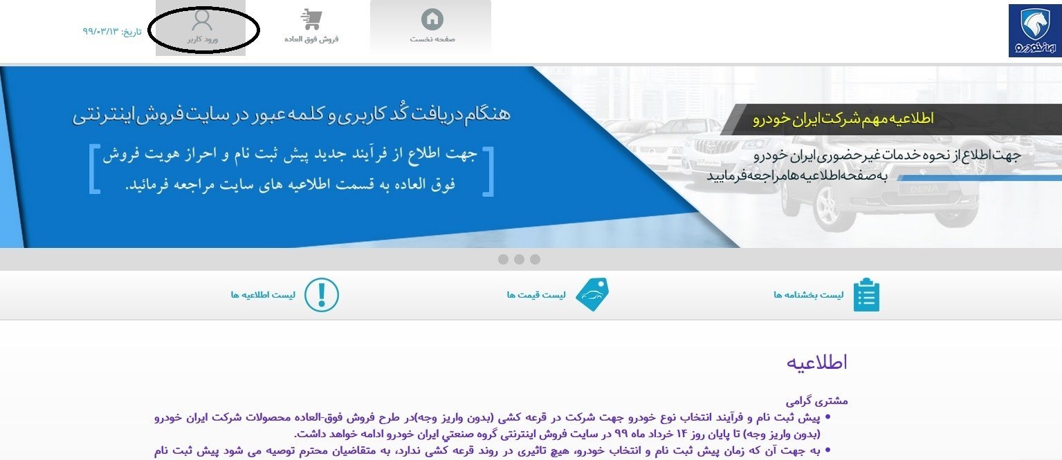 مشتری باید در گام نخست ثبت نام به درگاه فروش محصولات ایران خودرو ورود پیدا کرده با کلیک کردن به بخش ورود کاربری نسبت به ثبت نام و دریافت کد کاربری اقدام کند.
