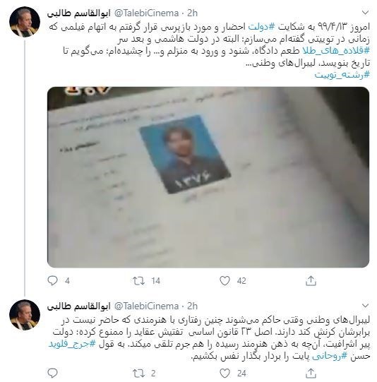 به گزارش گروه سیاسی خبرگزاری تسنیم، ابوالقاسم طالبی از کارگردانان سینمای ایران در صفحه شخصی خود در توئیتر با بیان اینکه در پی شکایت دولت احضار و مورد بازپرسی قرار گرفته، به بیان تضیحاتی در این باره پرداخته است.