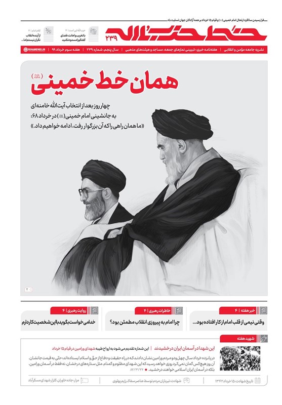 همچنین خط حزب الله به مناسبت ایام ارتحال حضرت امام خمینی(رحمهالله) پنج برش از زندگی ایشان به روایت آیتالله خامنهای را در اطلاع نگاشت این شمارهی خود مرور کرده است.