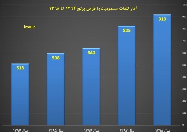 بر اساس این گزارش، در این مدت استانهای تهران با 220، مازندران با 122 و گیلان با 85 فوتی بیشترین آمار مرگ ناشی از مسمومیت با قرص برنج را داشتهاند همچنین در سال 1398 آمار تلفات قرص برنج در بیش از نیمی از استانها کمتر از 20 نفر گزارش شده است.