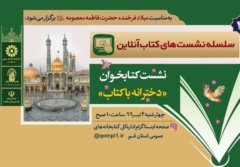 وی بیان کرد: چهارمین نشست "کتاب آنلاین" به مناسبت زادروز فرخنده حضرت فاطمه معصومه(س) در قالب نشست کتابخوان با عنوان "دخترانه با کتاب" روز چهارشنبه 4 تیرماه ساعت 10 صبح بهصورت پخش زنده از صفحه اینستاگرام qompl1.i اداره کل کتابخانههای عمومی استان پخش میشود.