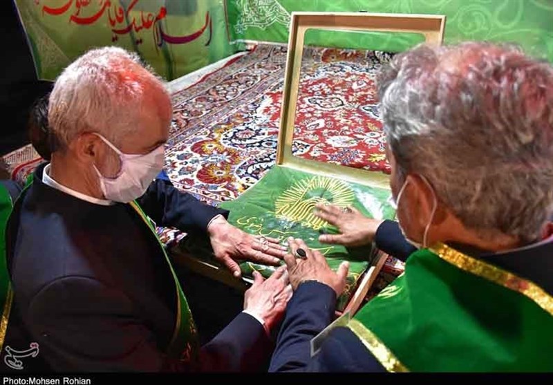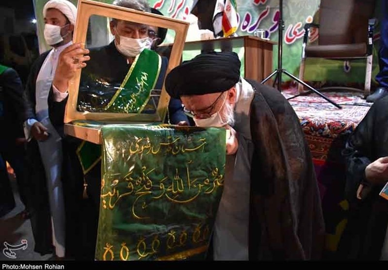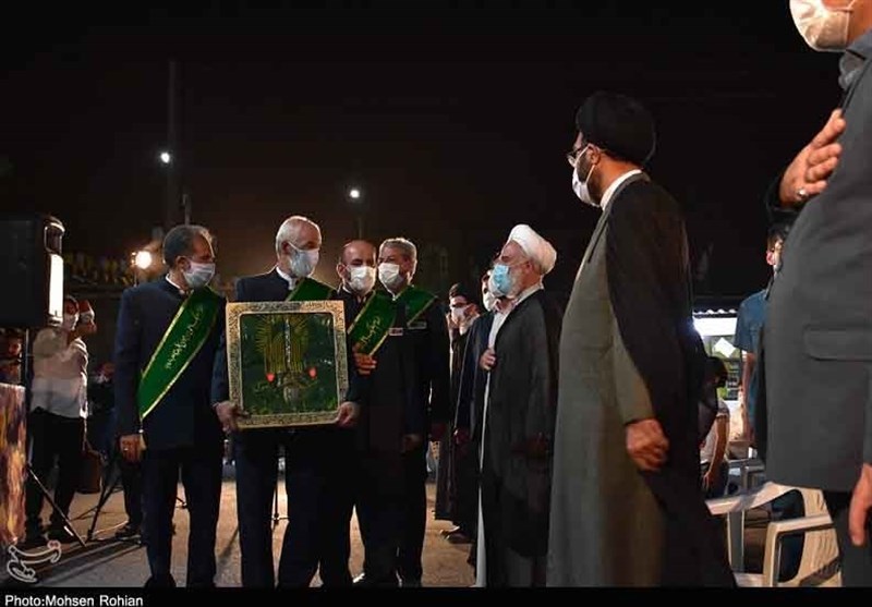در این مراسم خادمیاران آستان قدس رضوی نیز حضورداشته و پرچم گنبد منور امام رضا(ع) زینت‌بخش این مراسم شد.