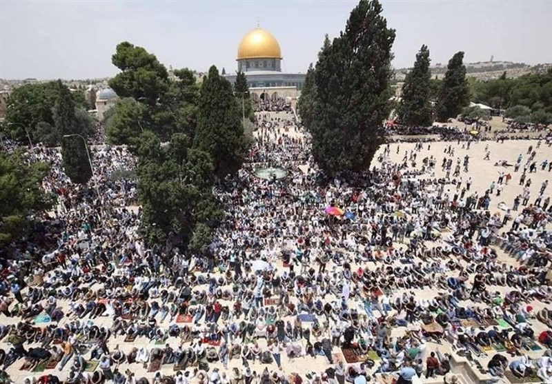 بر اساس این گزارش، نمازگزاران فلسطینی با رعایت کامل دستورالعملهای پیشگیرانه در خصوص ویروس کرونا در مسجدالاقصی نماز خواندند.