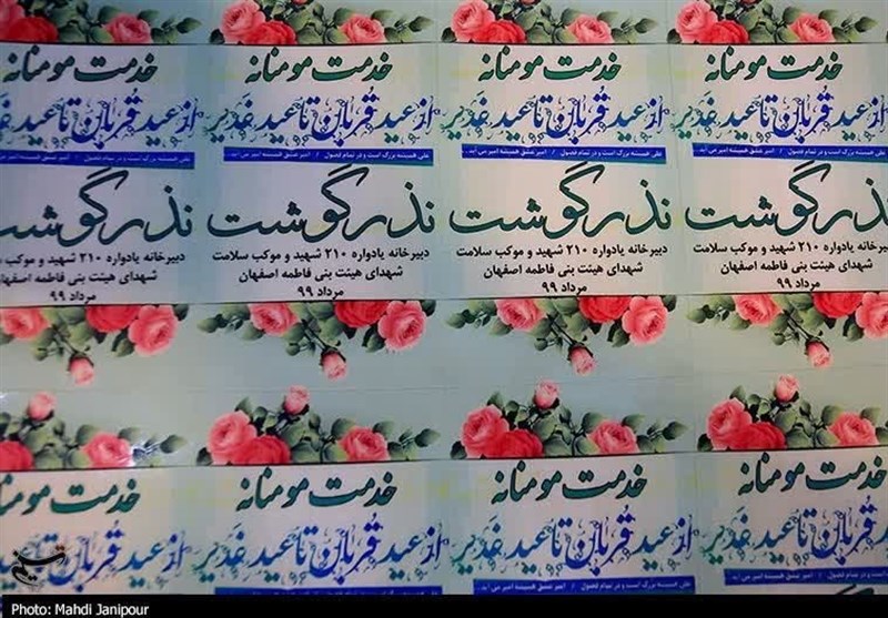 هیئت بنی فاطمه اصفهان با همت مردمی 150 راس گوسفند تهیه کرده و در قالب بسته بندی با عنوان "نذر گوشت از قربان تا غدیر" در بین نیازمندان توزیع می‌کنند.