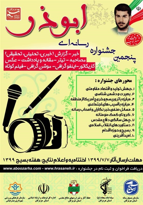 مسئول بسیج رسانه استان هرمزگان ادامه داد: اصحاب رسانه تا 7 مهرماه فزصت دارند آثار خود را ارسال کنند د در هفته بسیج آثار برتر معرفی میشوند، اصحاب رسانه می توانند برای شرکت در جشنواره آثار یکساله اخیر خود را از طریق سایت aboozarha.ir ثبت نمایند.