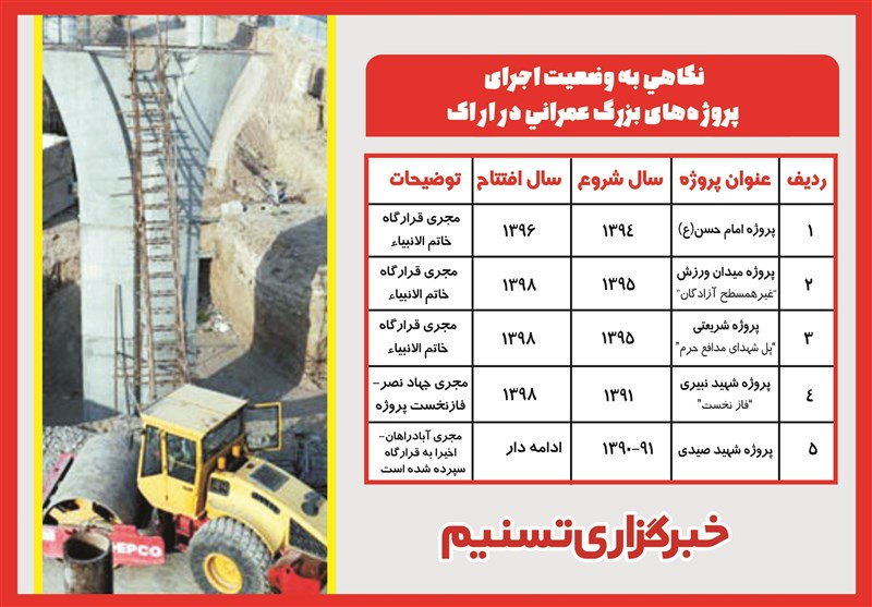 همانطور که در جدول زیر هم مشاهده میشود تمامی پروژههایی که این روزها شورای شهر و شهرداری اراک ژست فاتح آنرا میگیرند مربوط به دورهها و سالهای قبل است و این دو مجموعه تنها برای بستن و بریدن ربان افتتاح اقدام کردهاند.