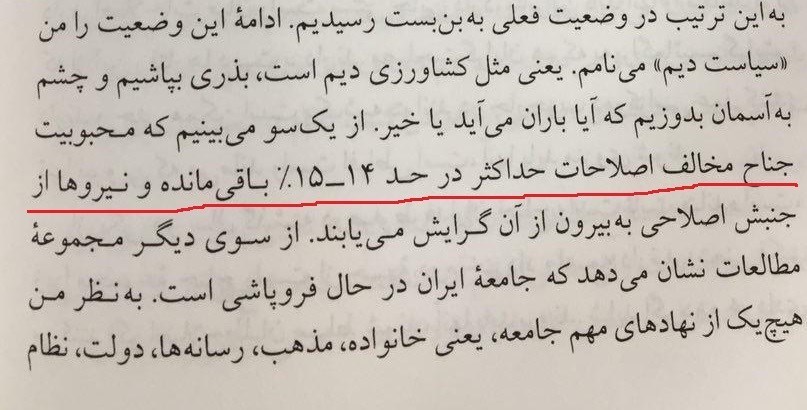 دوم: اگرچه اصلاحطلبان در دوران انتخابات 98 از بازگشت به «اصلاحات اجتماعی» و کنارهگیری از قدرت به سود مسئله «هویت» سخن میگفتند، اما مطلب آقای حجاریان نشانهی مهمی از تغییر رویکرد در تلاش برای دستیابی به قدرت است.