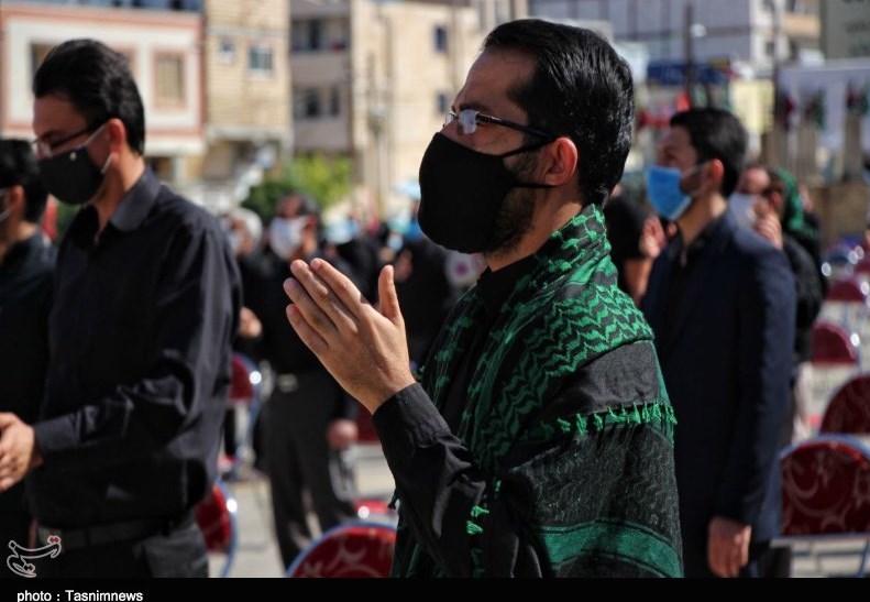 نماز ظهر تاسوعا با رعایت پروتکل‌ بهداشتی و فاصله‌گذاری اجتماعی در بوشهر اقامه شد+تصاویر