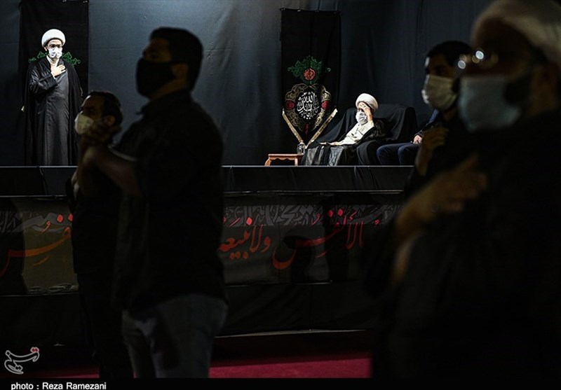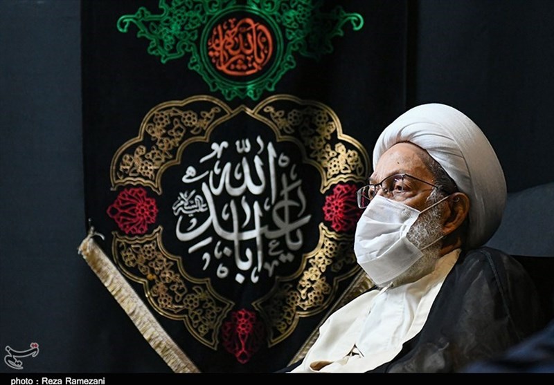 گروه استان‌ها_ مراسم عزاداری بحرینی‌های مقیم قم دهه دوم محرم و ایام اسارت آل‌الله با حضور آیت‌الله شیخ عیسی قاسم رهبر شیعیان بحرین برگزار شد.