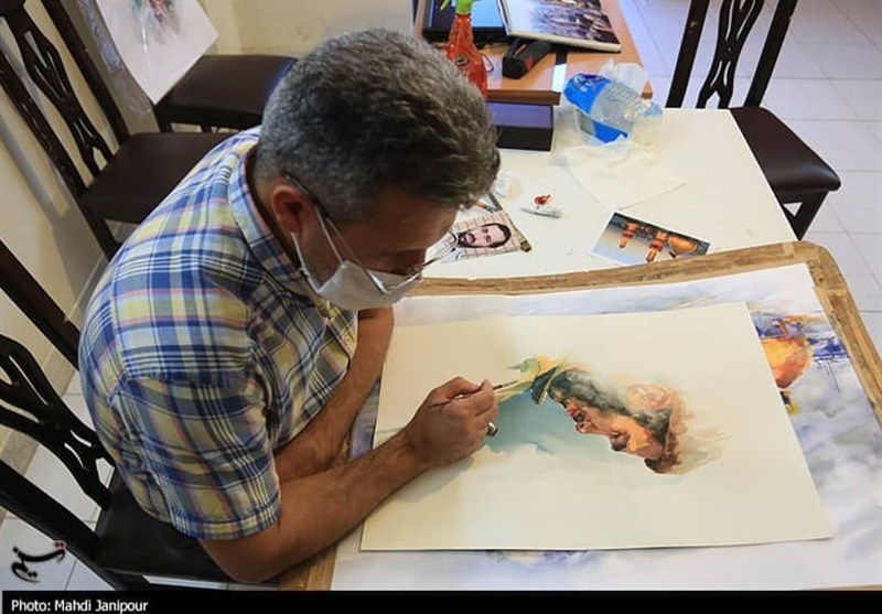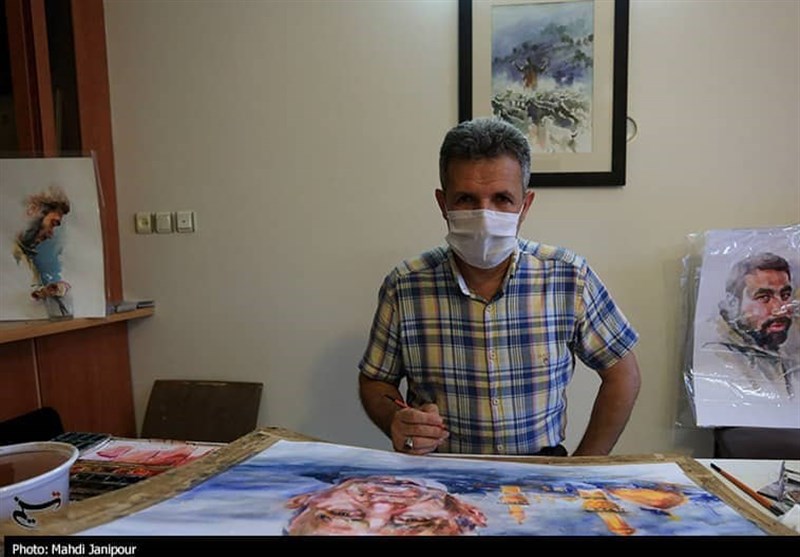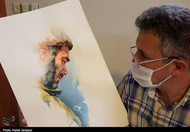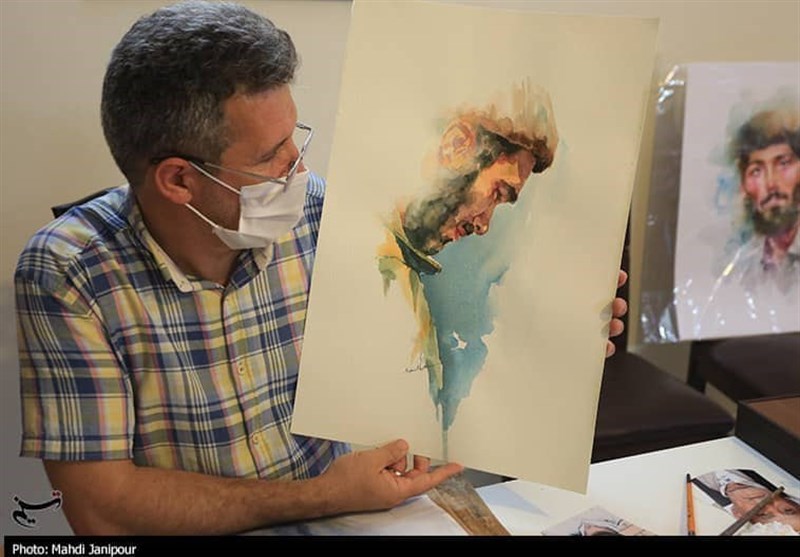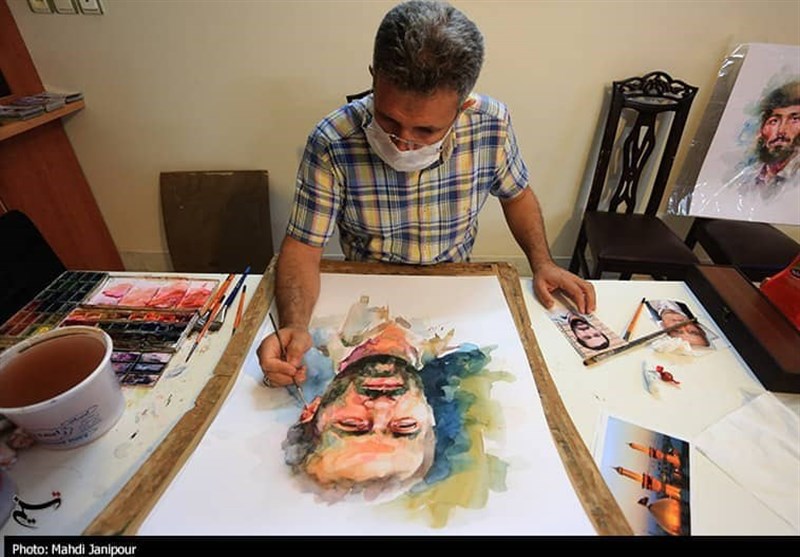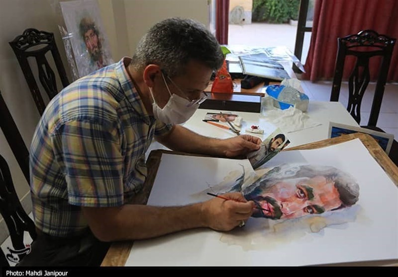 اصفهان|روایت تصویری چهره‌نگاری شهدا، توسط رزمنده 8 سال دفاع مقدس