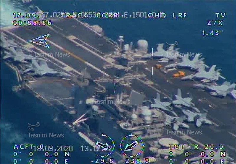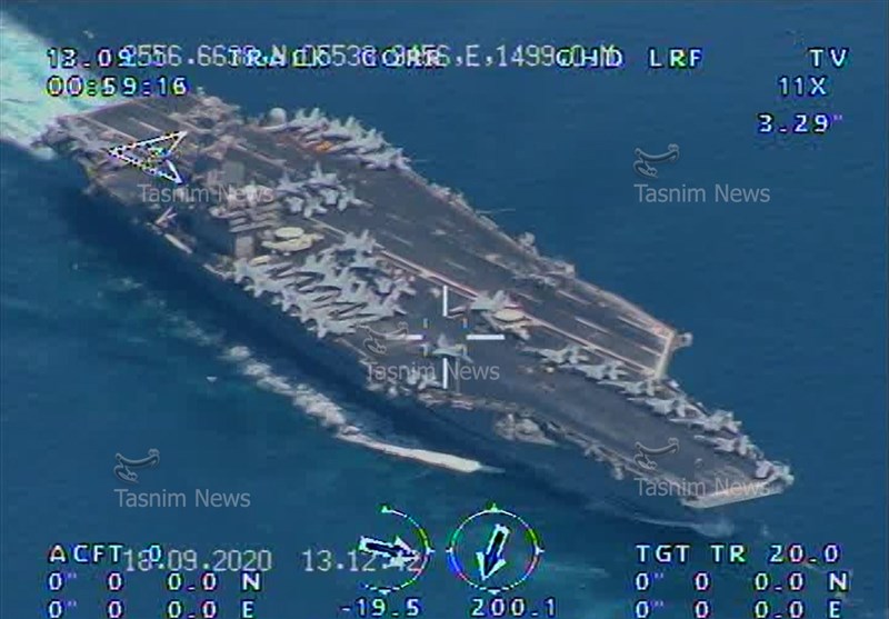 به گزارش خبرگزاری تسنیم از بندرعباس، سردار علیرضا تنگسیری در مراسم الحاق 188 فروند پهپاد و بالگرد به نیروی دریایی سپاه از رهگیری ناوگروه هواپیمابر آمریکایی با پهپادهای بومی سپاه خبر داد و اظهار داشت: در این رهگیری، ناو هواپیمابر نیمیتز به همراه ناوهای اسکورت کننده شامل دو فروند ناوشکن 114 و 104، رزم ناوهای 58 و 59، دو ناوچه گشتی 9 و 12 و یک فروند شناور گارد ساحلی هزار و 333 ارتش تروریستی امریکا، قبل از ورود به تنگه هرمز و خلیج فارس شناسایی شدند.