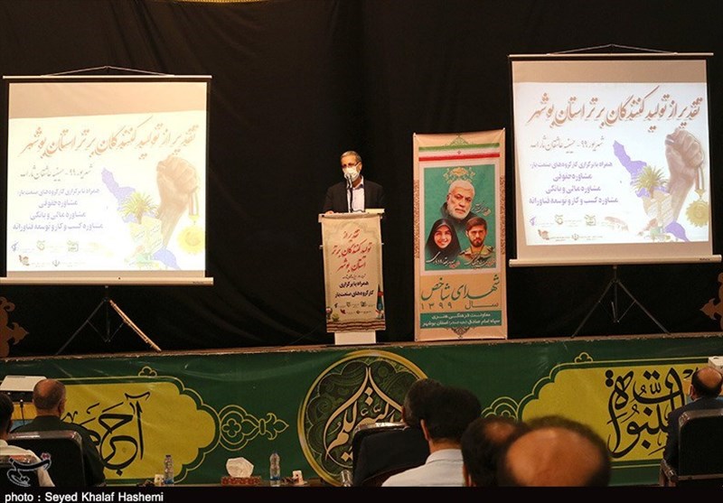 در این آیین از 18 تولید کنند برتر استان بوشهر در بخشهای مختلف از جمله صنعتی، معدنی، اقتصاد مقاومتی، جهش تولید، صادراتی و محصولات تولیدی در عرصه مقابله با کرونا تجلیل شد.