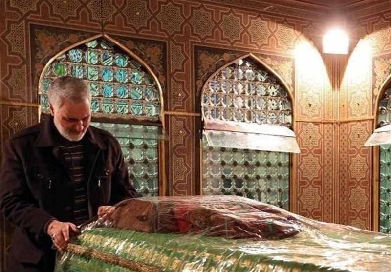 به گزارش خبرگزاری تسنیم از مشهدمقدس، در این قاب دلنشین تاریخی، سردار دل‌ها شهید حاج قاسم سلیمانی، خادم دستگاه ولایت در کنار مضجع شریف امام رضا(ع) هر چه می‌گوید و می‌خواهد، معلوم است به مراد نزدیک بوده.