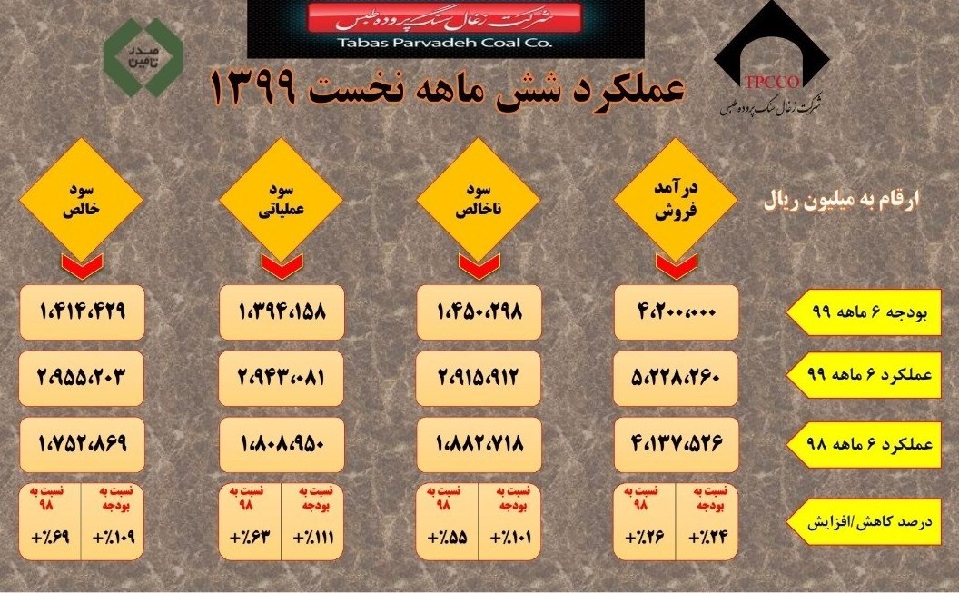 وی در ادامه با اشاره به جایگاه شرکت در صنعت کشور به عنوان بزرگترین تولیدکننده زغال سنگ ایران و تأمین کننده عمده نیاز زغالی ذوب آهن اصفهان، افزود: این شرکت از تمام ظرفیت مدیریتی، منابع انسانی و تجهیزاتی خود استفاده کرده است تا در شش ماهه اول سال جاری، علیرغم تمامی محدودیت های ناشی از انتشار کووید 19 و همچنین مشکلات ارزی ناشی از تحریم های ظالمانه که روند تأمین قطعات و تجهیزات موردنیاز را با چالش جدی مواجه کرده است، اهداف برنامه را محقق کند تا علاوه بر حفظ حدود 2500 فرصت شغلی ایجاد شده در منطقه کمتر برخوردار طبس، روند تأمین منابع موردنیاز صنعت فولاد کشور را نیز پشتیبانی کرده و در راستای مسئولیت های اجتماعی، خدمات ارزنده ای نیز به منطقه و استان ارائه کند.