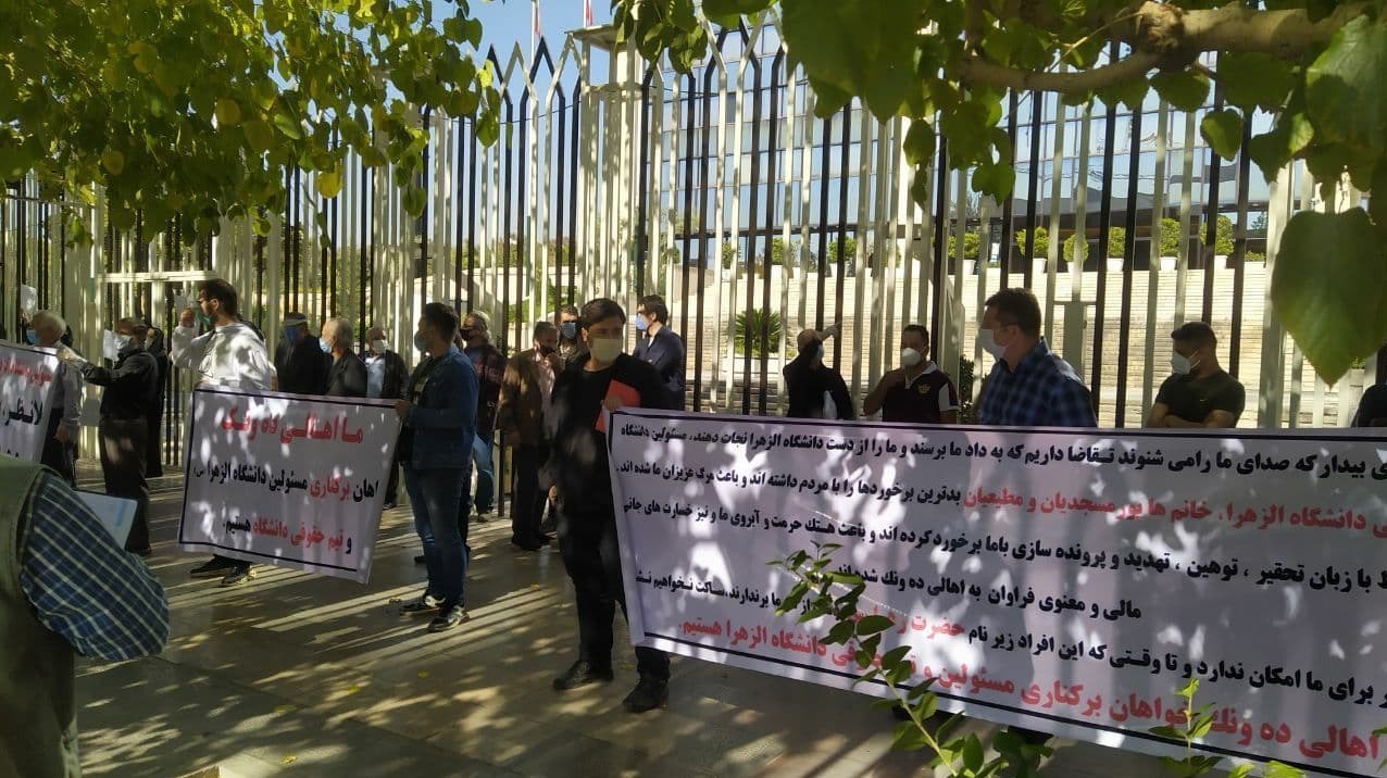 دانشجویان و مردم با در دست داشتن پلاکاردهایی که در آن خواستار برکناری ریاست دانشگاه الزهرا(س) شده بودند، از مسئولان قوه قضائیه و مقننه خواستند که به فریادشان برسند و به وضعیت آنها رسیدگی کنند.