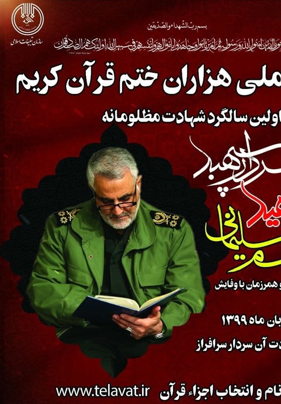 - پویش هزاران ختم قرآن‌کریم از 13 آبان تا سالروز شهادت حاج قاسم که سامانه مربوطه در سایت تلاوت به نشانی www.telavat.ir فعال است که علاقه‌مندان جهت شرکت در این پویش ملی می‌توانند با انتخاب حزب و یا جزء مورد نظر در این طرح سهیم باشند.