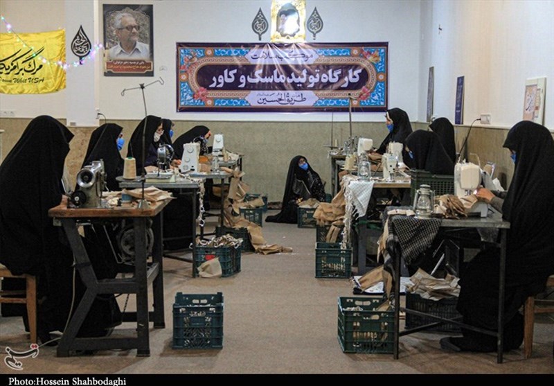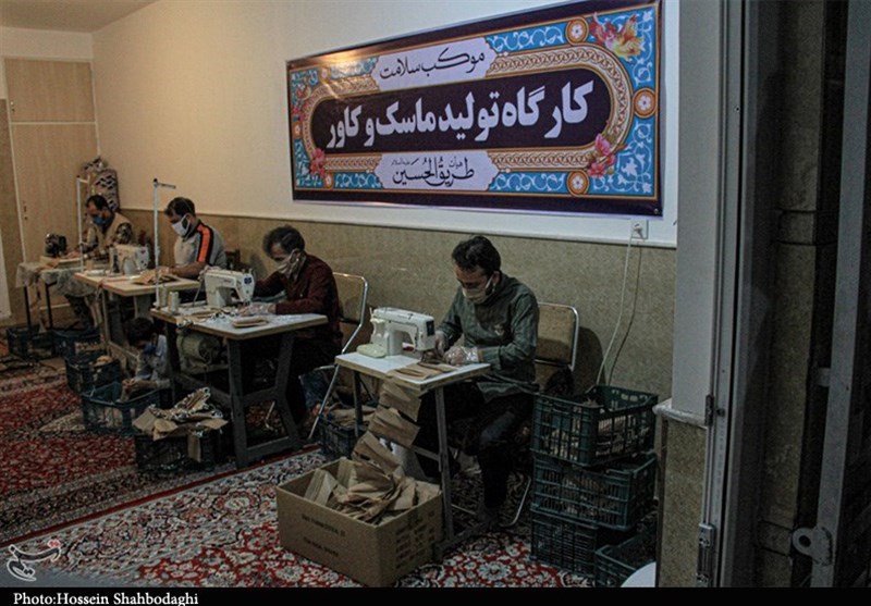 یکی از کارگاه‌های تولید ماسک گروه‌های جهادی بسیج