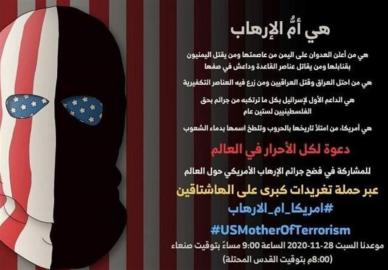 هشتگ «آمریکا مادر تروریسم» به دعوت رسانه ها و فعالان مردمی یمن