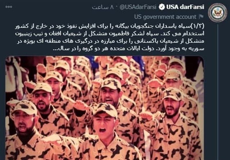 به گزارش دفتر منطقهای خبرگزاری تسنیم ، وزارت خارجه آمریکا در آستانه شهادت سالگرد سردار رشید اسلام، شهید سپهبد حاج قاسم سلیمانی توئیت سهگانهای را علیه لشکر فاطمیون منتشر کرد.
