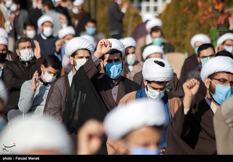 حجتالاسلام ایرانی مدیر حوزههای علمیه کرمانشاه نیز در این تجمع اظهار داشت: در حرکت توهینآمیز این شیخ فریبخورده بسیار عجیب است که جای متهم و مدعی و مظلوم و مستبد بهراحتی عوض شده و یک شیخ معلومالحال که سالها به بیراهه رفته است در دفاع از قاتل سخن میگوید.