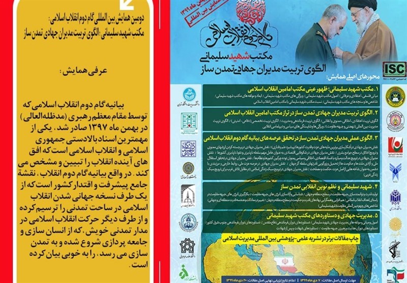 به گزارش گروه دانشگاه خبرگزاری تسنیم، پس از برگزاری نخستین همایش بین المللی گام دوم انقلاب اسلامی با موضوع "الگوی نظام انقلابی تمدنساز" در سال گذشته، دانشگاه جامع امام حسین علیه السلام، در نظر دارد با همکاری سایر دانشگاه ها و مراکز علمی ایران و سایر کشورهای اسلامی و محور مقاومت، دومین همایش بین المللی گام دوم انقلاب اسلامی را با موضوع "مکتب شهید سلیمانی؛ الگوی تربیت مدیران جهادی تمدن ساز" را در روز 14 و 15 بهمن ماه سال جاری برگزار کند.