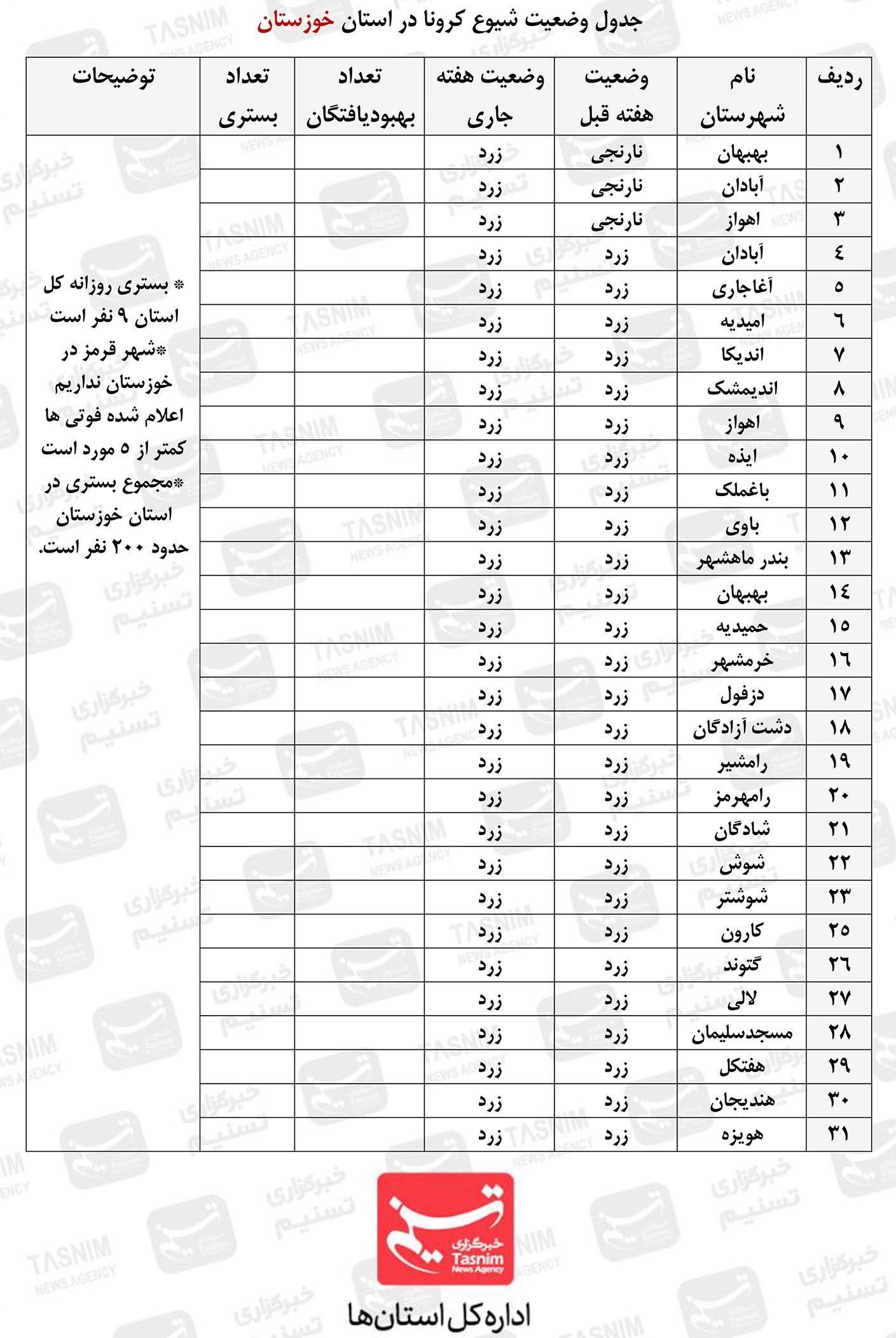 بیمارستان رازی که به عنوان مرکز اصلی بستری بیماران کرونایی در استان خوزستان و شهر اهواز اختصاص داشته نیز بطور کامل به حالت عادی بازگشت و هم اکنون از حالت ویژه کرونا خارج شده است.