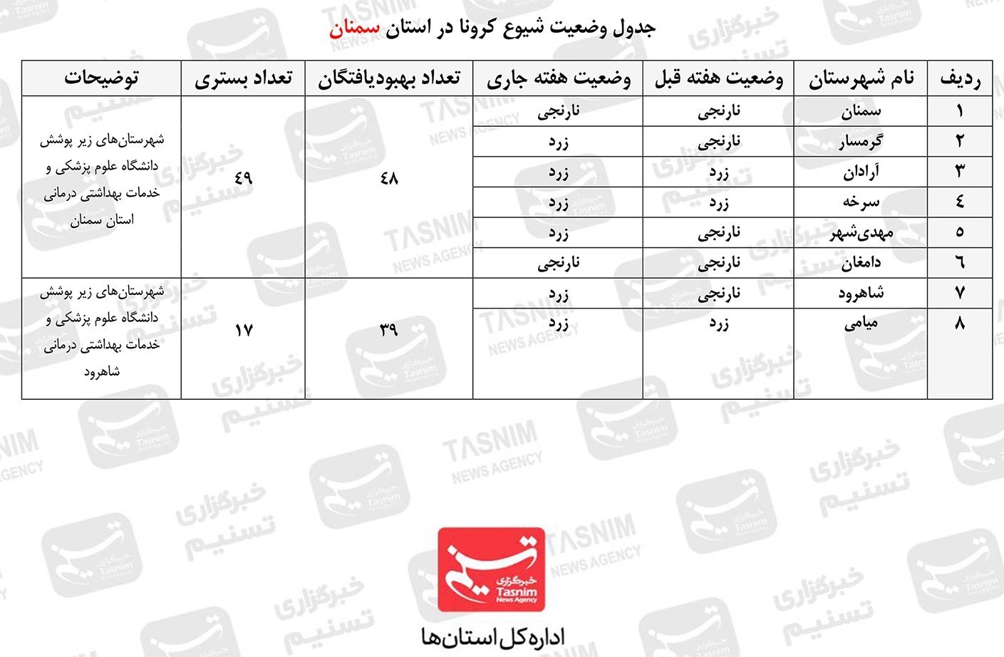 بهگزارش خبرگزاری تسنیم از سمنان، روند ابتلا به بیماری کرونا در استان سمنان پس از اوجگیری در مهرماه و آبان ماه و با اعمال محدودیتها، هماکنون کاهشی بوده و به ثبات نسبی رسیده است.