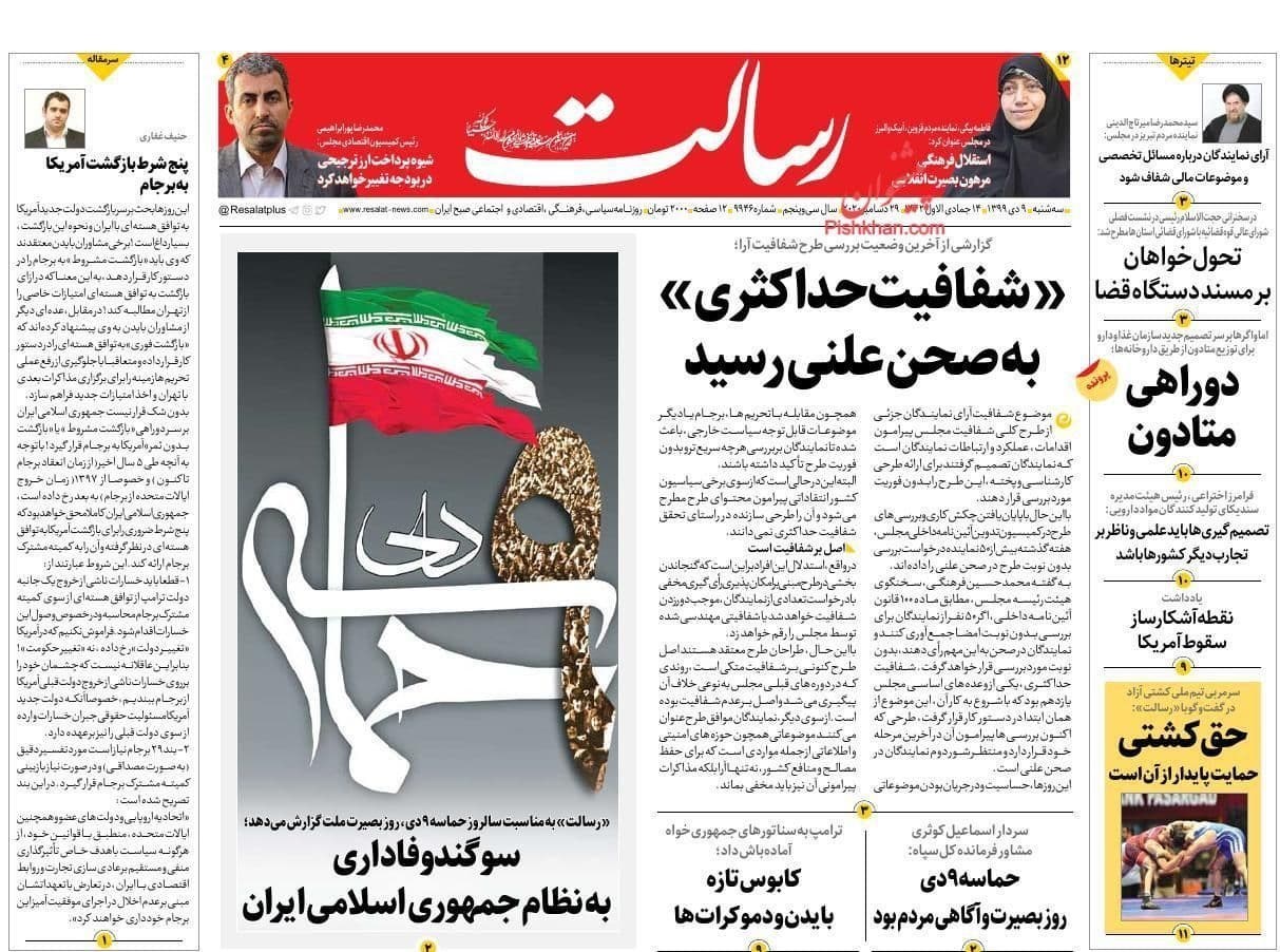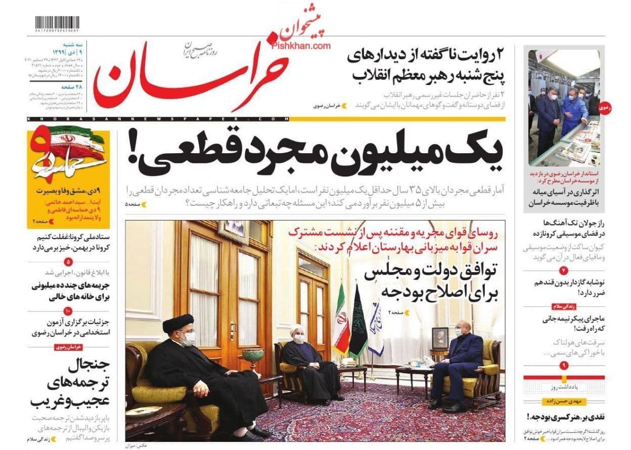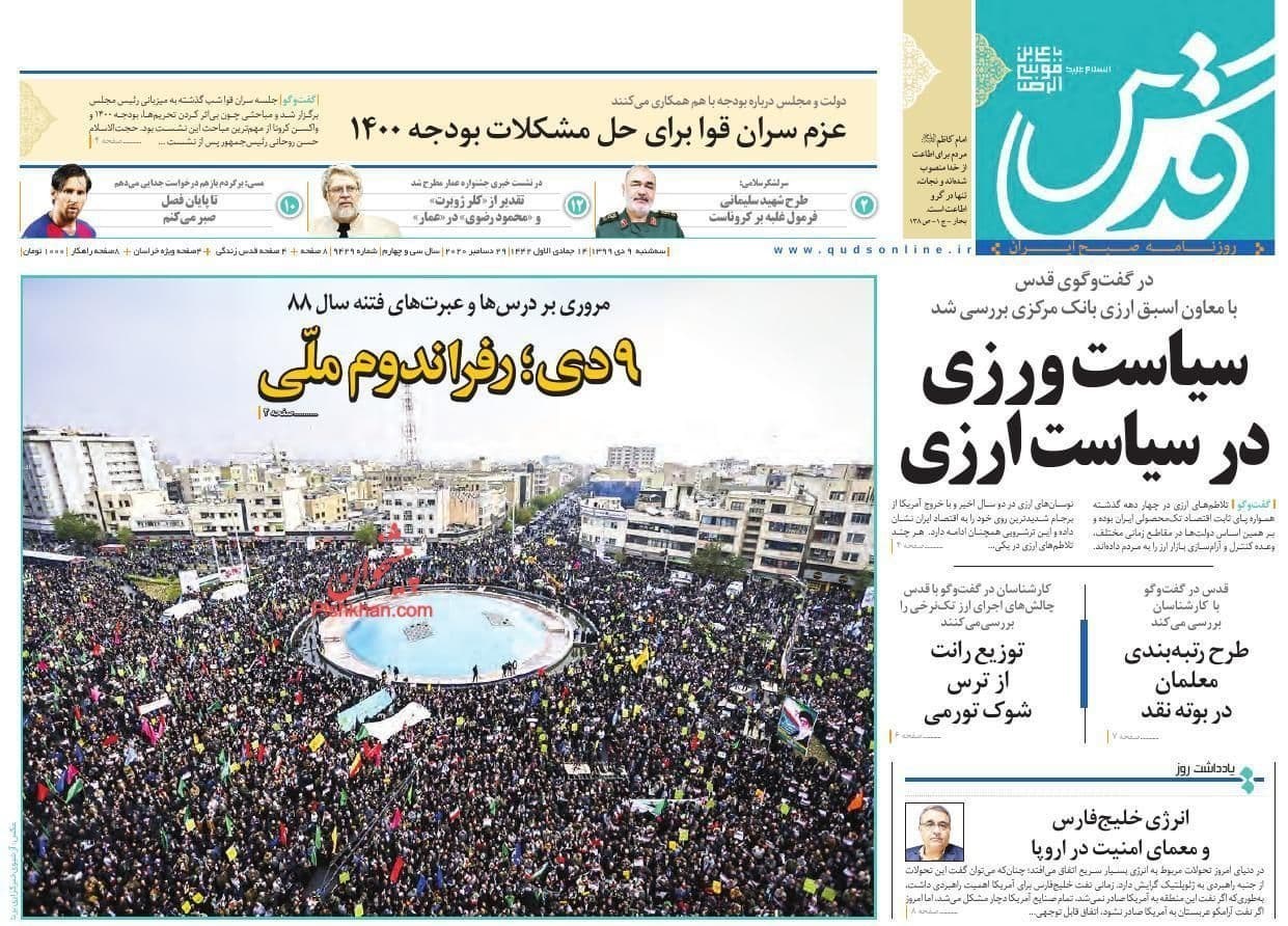 صفحه نخست روزنامه‌های سه شنبه 9 دی ماه
