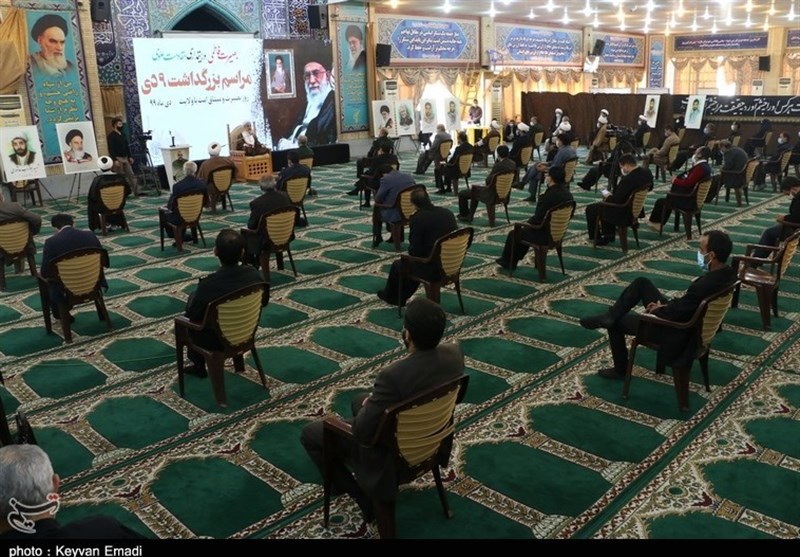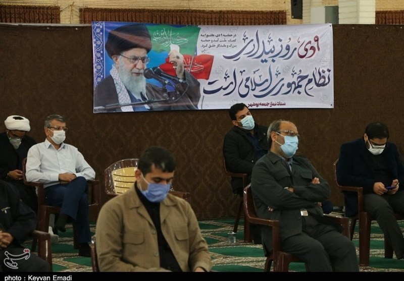مراسم یومالله 9 دی در بوشهر با سخنرانی حجت الاسلام عدالت و با حضور آیت الله صفایی بوشهری نماینده ولی فقیه در استان و امام جمعه بوشهر با رعایت پروتکلهای بهداشتی در مصلی شهر بوشهر برگزار شد