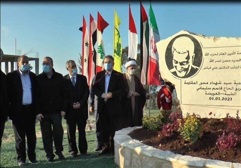 به گزارش گروه بین الملل خبرگزاری تسنیم به نقل از پایگاه خبری العهد حزب الله لبنان با نظارت «سیدحسن نصرالله» دبیرکل حزب الله و در اولین سالگرد شهادت سردار سپهبد «قاسم سلیمانی» و «ابومهدی المهندس» و همرزمانشان یادمانی از شهید سلیمانی در منطقه حفاظت شده «تل العویضه» در جنوب لبنان نصب کرده و این منطقه را که بیش از 100 هزار درخت در آن کاشته شده است به نام سردار ایرانی نامگذاری کرد.