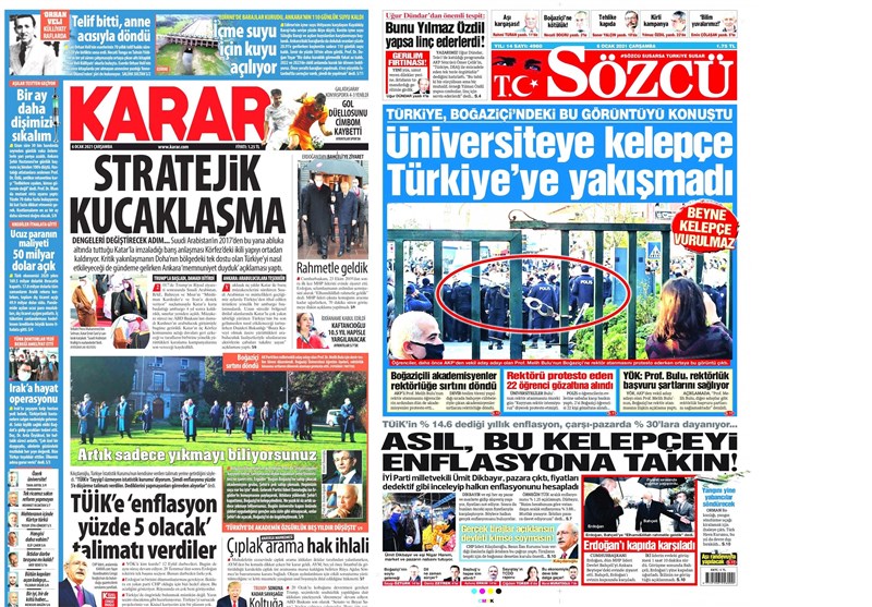 به گزارش گروه بینالملل خبرگزاری تسنیم، بسیاری از روزنامههای ترکیه، امروز در عکس و تیتر صفحه نخست، اعتراضات دانشجویان بوغاز ایچی استانبول و دیدار اردوغان و باغچلی را برجسته کردهاند.