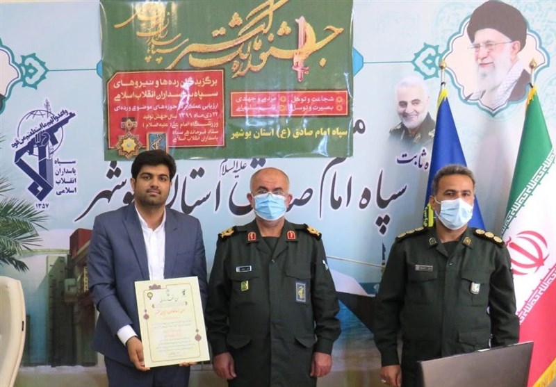 در این آیین سردار علی رزمجو، فرمانده سپاه امام صادق(ع) استان بوشهر به نیابت از فرمانده کل سپاه پاسداران انقلاب اسلامی، لوح افتخار سازمانی موفقترین سازمان قشری در سطح بسیج کشور را به عبدالله نجفی مسئول بسیج رسانه استان بوشهر اهدا کرد.