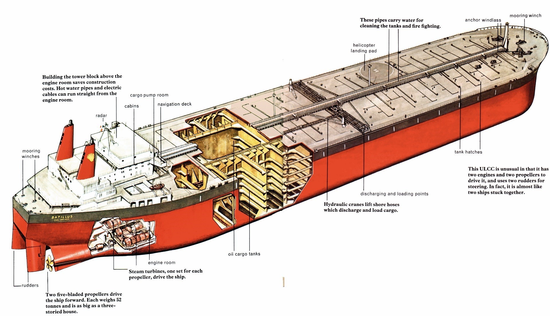 تصویر گرافیکی از حجم بدنه و داخل یک شناور نفتکش بزرگ