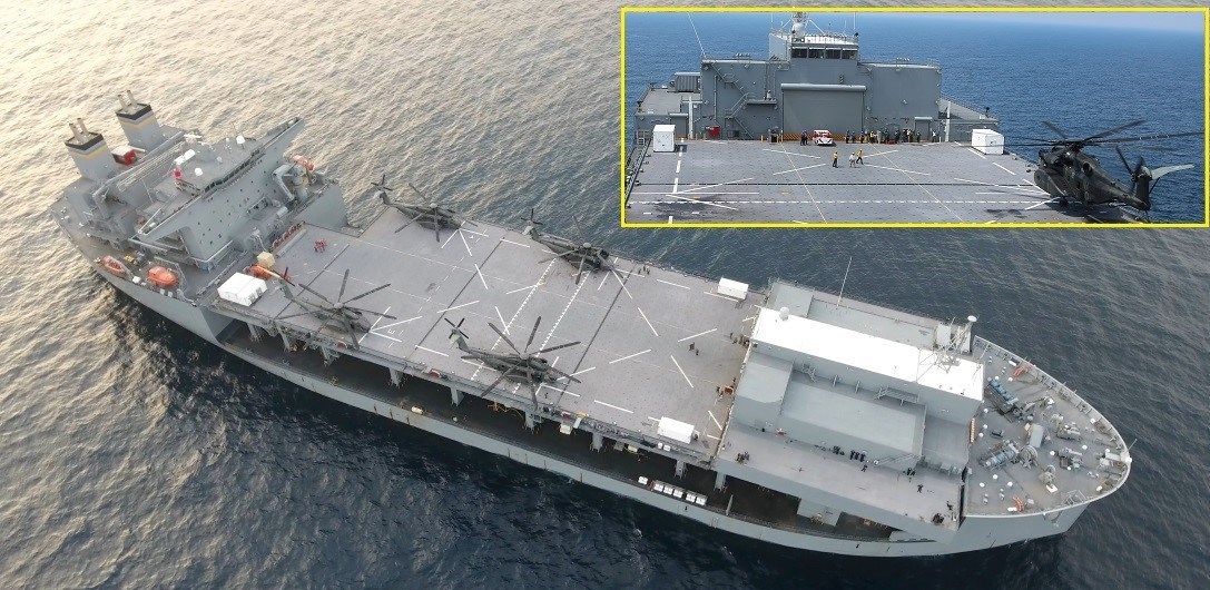 عرشه فوقانی این شناور قابلیت حضور همزمان 4 بالگرد بزرگ MH-53 یا تیلت روتور V-22 را دارد. آشیانه پذیرش نیز روی عرشه افزوده و فضای زیر عرشه نیز به طور گسترده برای مأموریت های مدنظر تغییر داده شده است.