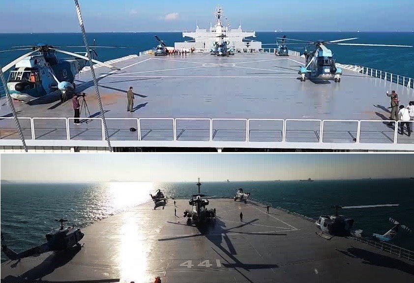 استقرار 5 بالگرد روی محوطه تعبیه شده بر عرشه ناوبندر مکران
