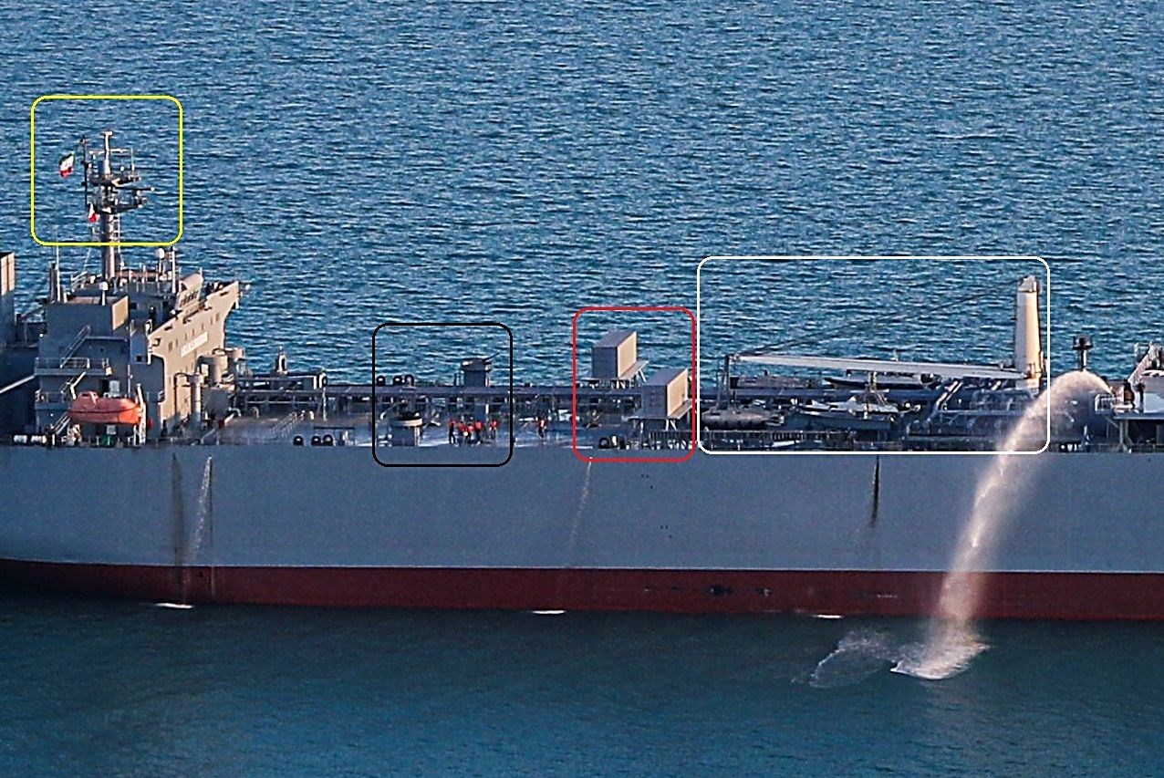 دو اتاقک نیز روی سقف سازه فرماندهی و در مجاورت دکل اصلی افزوده شده است که ممکن است مربوط به کنترل پرواز پهپادها یا سایر مأموریتها باشد.