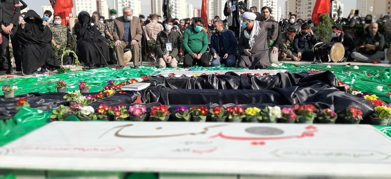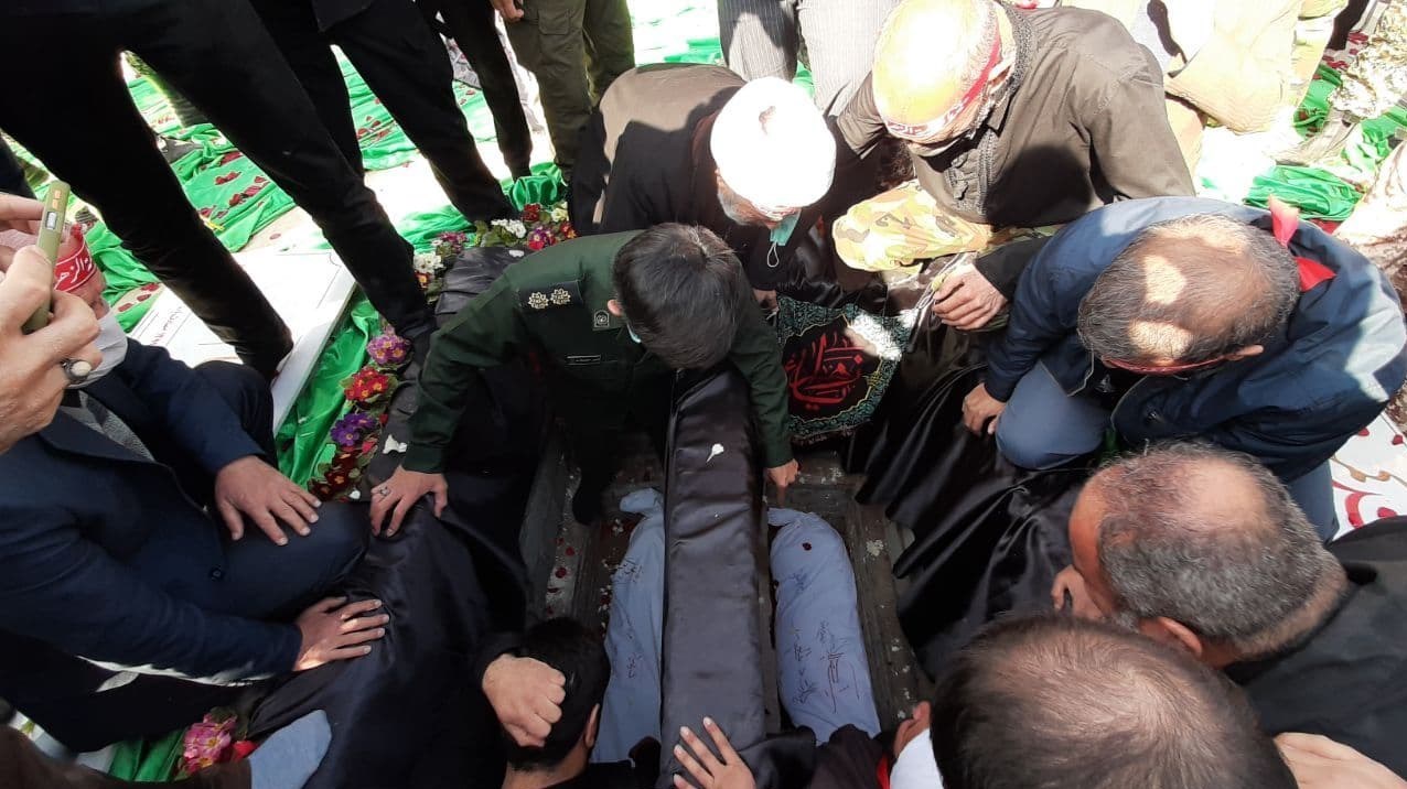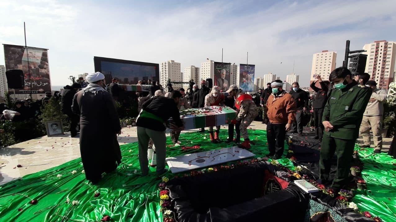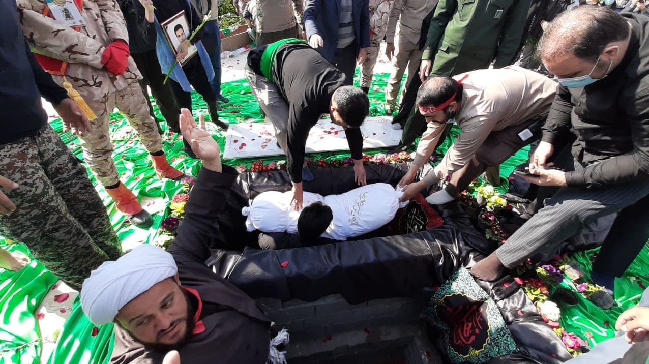 شهدای گمنام با لالایی یکی از مادران شهدا در خاک پر مهر مهرنشینان پرند آرام گرفتند + تصاویر