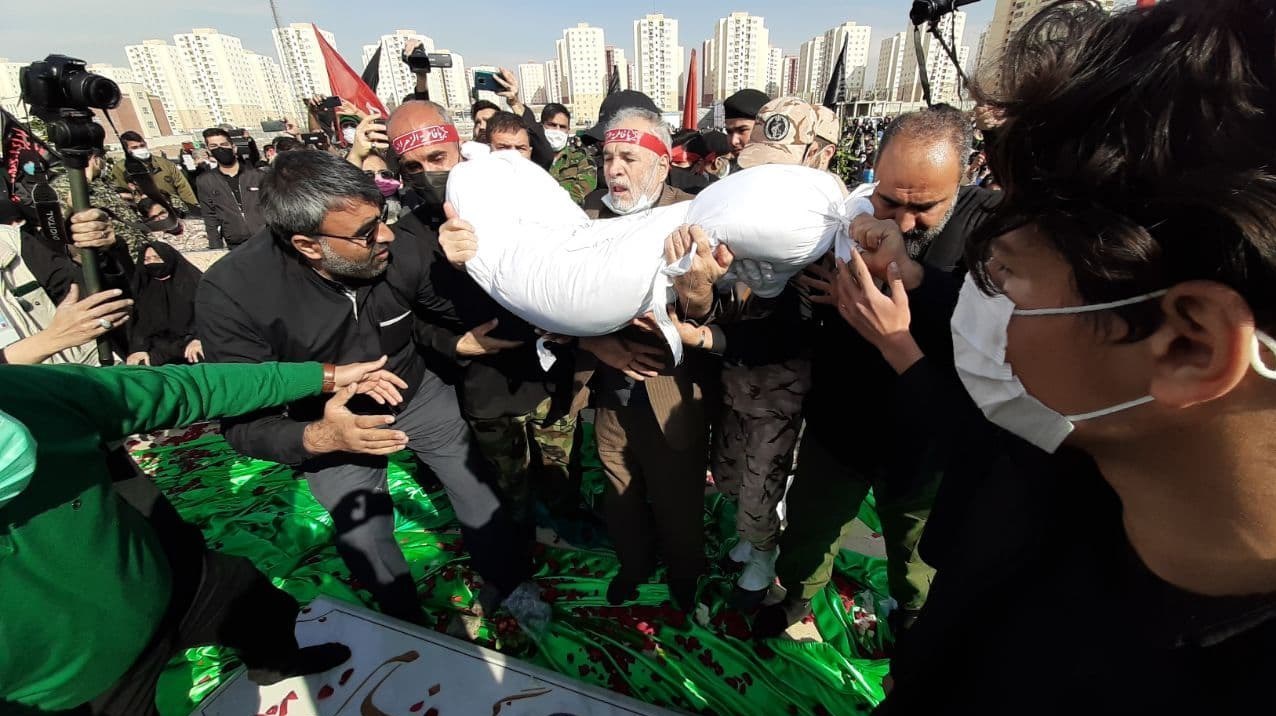 شهدای گمنام با لالایی یکی از مادران شهدا  در خاک پر مهر مهرنشینان پرند آرام گرفتند + تصاویر