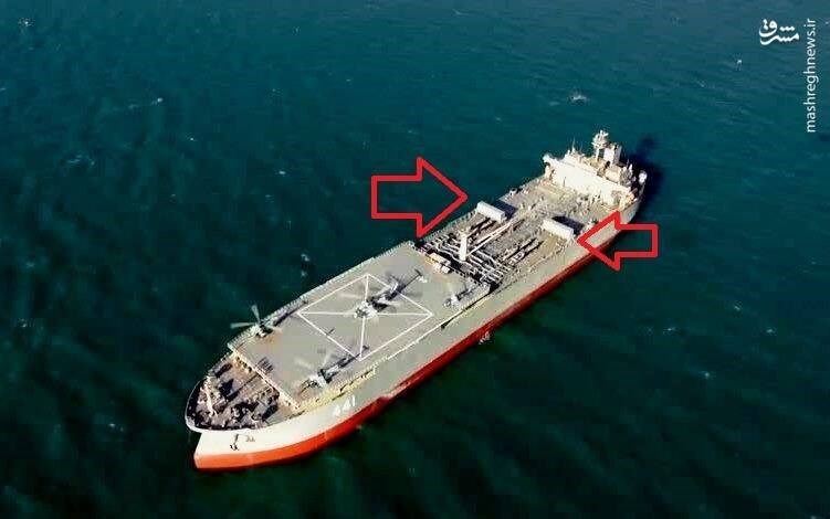 کانتینرهای حامل موشک بر روی ناو مکران از زاویه بالا