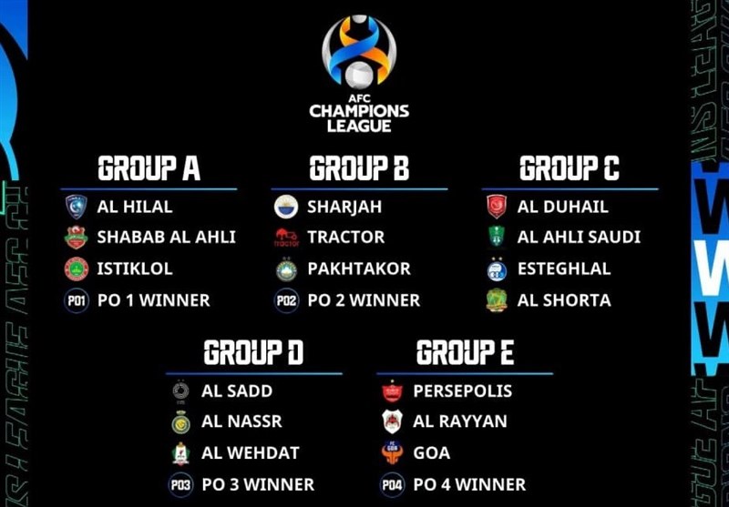 گروه E: پرسپولیس ایران، الریان قطر، گوای هند و برنده پلیآف 4 غرب (الوحده امارات - الزورای عراق)