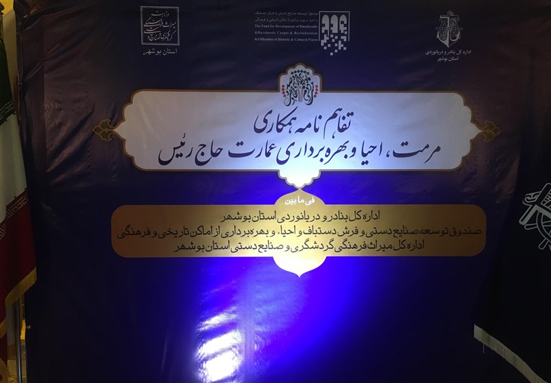 مدیرکل میراث فرهنگی، صنایع دستی و گردشگری بوشهر در این مراسم با بیان اینکه این تفاهمنامه بین مدیرکل بنادر و دریانوردی استان بوشهر و مدیرعامل صندوق توسعه صنایعدستی و فرش دستباف و احیا و بهرهبرداری از اماکن تاریخی و فرهنگی منعقد شد اظهار داشت: عمارت تاریخی "حاجرئیس" در محدوده اداره کل بنادر و دریانوردی بوشهر قرار دارد و برای احیا و واگذاری آن به بخش خصوصی در اختیار مدیرعامل صندوق احیا و بهرهبرداری از اماکن تاریخی و فرهنگی قرار گرفته است.