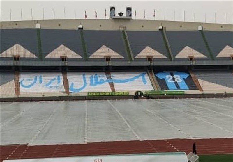 بنر بزرگی از مرحوم انصاریان کنار زمین دیده میشود. همچنین قاب عکسی از این مرحوم در کنار مادرش روی نیمکت استقلال گذاشته شده است.